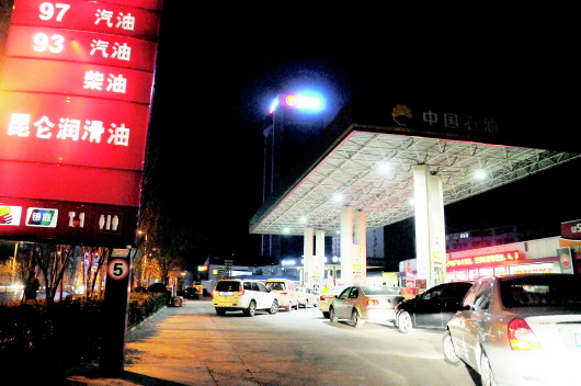 2月8日晚,受到油价上调预期的影响,德州不少市民在加油站排队等候加油。