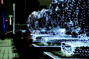 8日晚上6点半,新世纪广场上的花灯亮起,花团锦簇的满天星、吉祥喜庆的大红灯笼,使新世纪广场的节日气氛增色不少。两侧的红叶石楠球树,也披上了亮闪的外衣,圆润的外形在灯光的映衬下相得益彰。沿着南门向广场望去,喷泉两侧的绿化带上也都缠绕了五彩的满天星,铺设出一条“星光大道”。