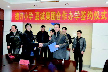 4日下午,德开小学与德州嘉诚置业集团合作办学签约仪式在嘉诚集团会议室正式签约,德开小学附属嘉诚幼儿园预计2015年9月1日正式开学。