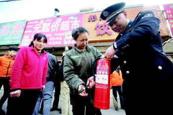李沧区湘潭路街道地处城乡结合部,有400余家小饭馆、小商店、小旅馆,不同程度存在消防隐患。8日,辖区民警在湘潭路上为商户免费发放灭火器,并为他们讲解使用方法。据悉,临近春节,湘潭路街道办自筹3万余元购置消防灭火器材,筑牢“防火墙”,保证业户平安过春节。