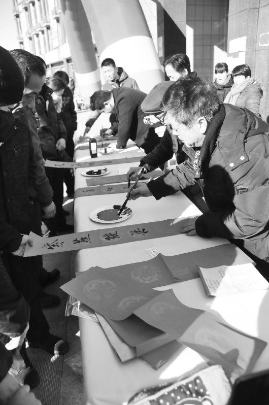 2000多张“大红福字”送到前来购置年货的市民手中。 本报记者 孙秀峰 摄