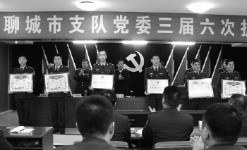 2月5日上午,武警聊城支队隆重召开表彰大会,表彰奖励2014年度部队建设中涌现出的先进集体和个人。聊城市委常委、政法委刘强书记出席大会并作重要讲话,市公安局任奎军局长出席会议。