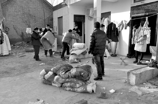 1月9日,小井镇李某家中液晶电视一台、玉米粒22袋、棉花被子6床被盗,折合经济损失约6000元。同样的“搬家”式盗窃,一个月内连发5起,盗窃物品包括大到家具、家电,小到玉米、花生等。
