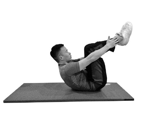 ②卷腹。不同于传统的仰卧起坐,卷腹能避免对腰部造成伤害。注意双腿并拢,大腿垂直地面,大小腿成90°,双手放在小腿外侧,拉起时指尖触碰脚踝。每组持续做20-30个。