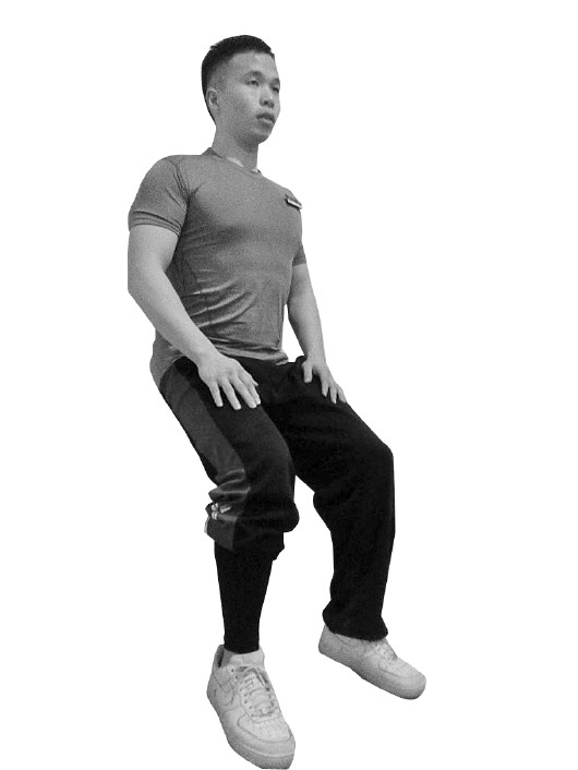 ④静蹲。选一面墙壁,膝盖呈90°,臀、腰、肩、背靠墙壁,每次坚持30秒左右。