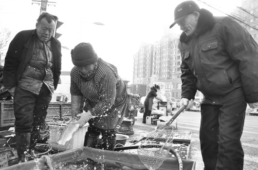 春节临近,卖鱼的梁先生迎来了好生意,一个大集要卖出五六百斤鱼。