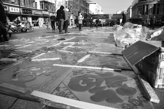 临近春节,市区年味渐浓,9日,大世界步行街上,摊位摆满了年画和对联等装饰品。