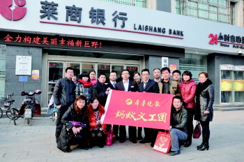 该行定期参与本报蚂蚁义工团的各项活动,先后三次参与玫瑰义卖活动。还持续资助贫困学生活动,帮助他们缓解生活和经济压力。在2014年本报策划的爱心1+1活动中,该行行长单士旗资助贫困学子两名。在得知巨野男孩小良远不慎烧伤后,该行积极参与“救助小良远活动”,并在第一时间在行内设立爱心账户,行长带头捐款,奉献爱心。