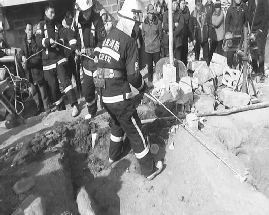 2月8日上午10时许,平邑县地方镇王固山村有村民在挖掘水井时,因塌方被埋。当地公安、消防、医疗人员接警后迅速赶到现场。救援人员勘查发现,该井深度约15米,直径约1.5米,纵深15米全部为松软泥土,因挖井排出的积水回流,导致井底有大量积水,深井周围的泥土被水泡软,井壁不断有泥土塌陷掉落。