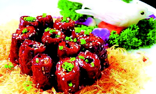 大肠是不少吃货的最爱,九转大肠尤甚。其制作工艺堪称复杂,先煮、再炸、后烧,出勺入锅反复数次,直到烧煨至熟,红润透亮,甜、酸、苦、辣、咸、清香兼有,回味悠长。