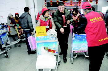 本报2月12日讯(记者 孙淑玉) 为帮助返乡市民轻松回家,12日上午,市慈善总会的慈善义工们在烟台汽车总站开展“慈善义工春运在行动”义务服务活动。拎包、导引,身着红马甲的义工们给不少市民带去了温暖。