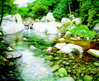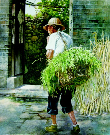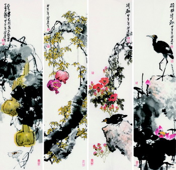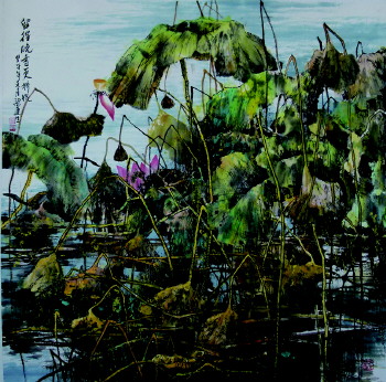 绘画的风格是自然形成的,在作画时画着画着总想在传统的国画中加一点西洋画的元素,如把水墨画中的墨分五色向色彩关系上转换,又不能脱离中国画的大道,形成统一完美的画面,最终的作品还是中国画.