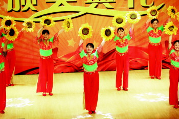 10日,在青岛市沧口学校艺术楼礼堂,社区居民正在表演自编自导的舞蹈。临近春节,李沧区振华路街道办事处为社区居民搭台,让百姓身边喜闻乐见的小节目登上大舞台,居民和演员同台同乐,感受春节的喜庆气氛。