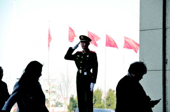 负责安保工作的武警战士认真履职。本报记者 刘涛 摄