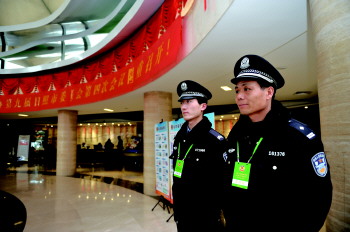 东港公安在政协委员驻地负责安保。 本报记者 刘涛 摄