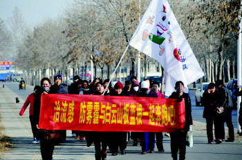 近百位市民参加本报联合漱玉平民大药房举办的迷你马拉松活动。 本报记者 王鸿哲 摄