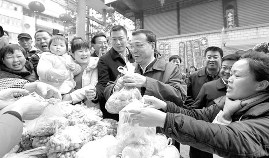 在对黎平大市场进行考察时,李克强最关心春节市场供应的三个问题:一是商品是否充裕?二是交易是否公平?三是食品是否安全?他向市场负责人强调,要确保供应、童叟无欺,更要绝对保证食品安全。