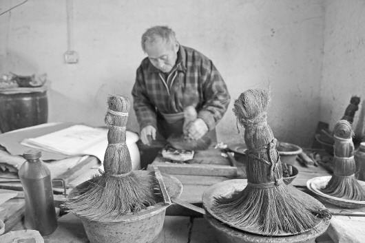 木版年画这一行当分工明确,有专门刻版的,有专管印刷的。目前聊城刻版艺人只剩下栾喜魁和陈庆生两位老人。最近陈庆生老人生病了,恐怕无法再拿起刻刀,他的两个儿子对于父亲的这门手艺绝活不感兴趣。栾喜魁也年龄大了,刻版手艺面临失传。