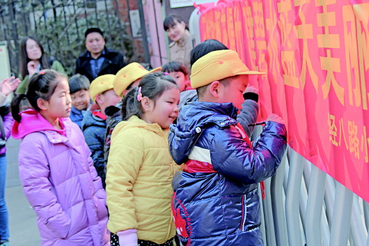 13日上午,经八路小学一年级1班的小学生开展了“不燃放烟花爆竹,建泉城碧水蓝天”的公益活动。他们来到学校附近的岔路街小区,向市民宣传燃放烟花爆竹的危害,倡导文明的节庆方式。路人纷纷驻足,并在横幅上签名。该班班主任焦艳菊表示,此次活动既宣传了燃放烟花爆竹的危害,又使同学们得到了很好的锻炼,从小树立环保意识。