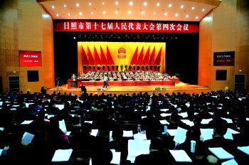 日照市十七届人大四次会议隆重开幕。 本报记者 刘涛 摄