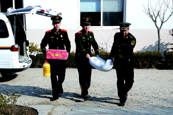 2月12日,日照边防支队官兵来到开发区奎山光荣院,为这里的30多名老人送来的节日物品,并和老人们一起包饺子,整理房间,送来节日关怀。