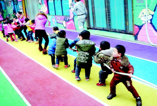 自述:小朋友拔河,队尾来了个帮倒忙的。