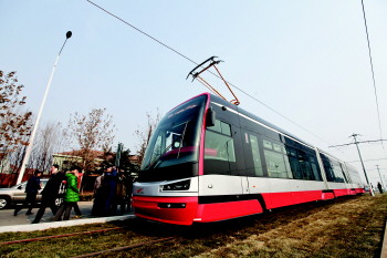 城阳现代有轨电车上路试跑。 本报记者 杨广帅 摄