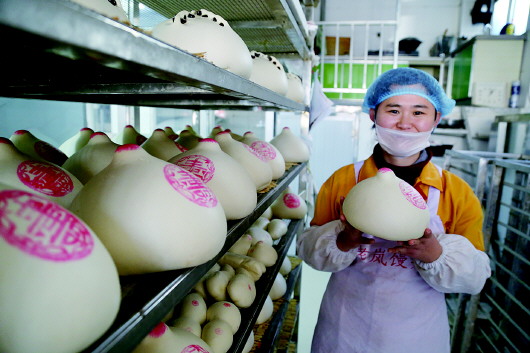 临近过年,老岚馒头店的寿桃饽饽、福饽饽卖得格外好。