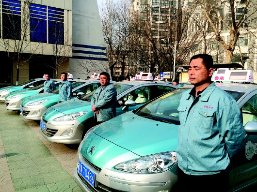 ◥标致出租车14日举行发车仪式,15日正式上路营运。