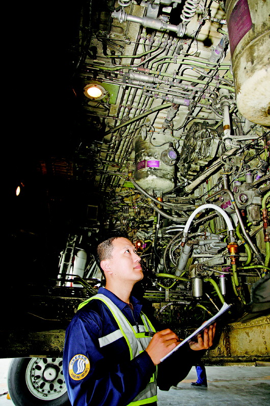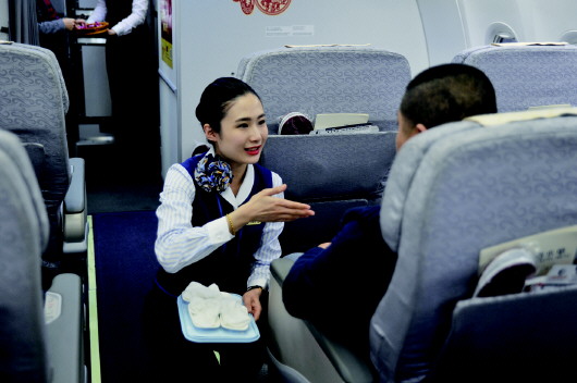 济南-深圳航线作为山航的精品航线由“鲁雁乘务组”负责执行。清晨6点30分,机组在飞机上做着旅客登机前的准备,分发报刊、清点用品。6点45分,旅客开始登机。“您好,欢迎乘机。”每一个人的脸上都洋溢着笑容,每一名旅客的脸上也都写满了返乡的迫切与喜悦。
