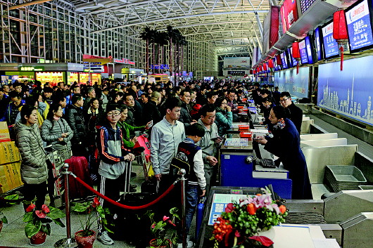 ◥早上6点30分,济南遥墙国际机场的候机楼内人山人海,到处都是准备乘坐飞机返乡过年的旅客。山航值机柜台前排满了兑换登机牌的旅客,在山航地服人员的引导下,大家自觉排成一队,整个候机楼内秩序井然。而在整个候机楼的每一个角落,几乎每隔几步,都会有一名山航青年志愿者站在那里为旅客服务。