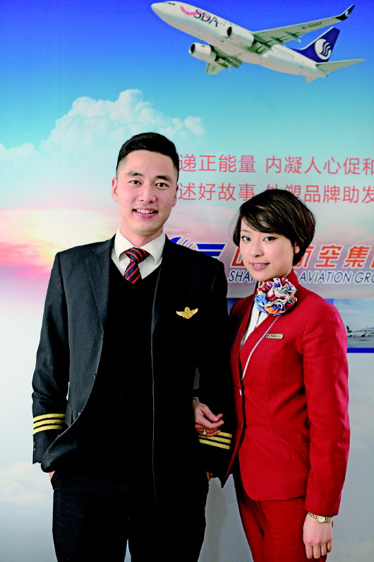 山航飞行部104中队的李彬生于1989年,还是一个年轻的副驾驶,而他的妻子,娇小可爱的九零后女生刘伊孜则是山航的地勤人员。