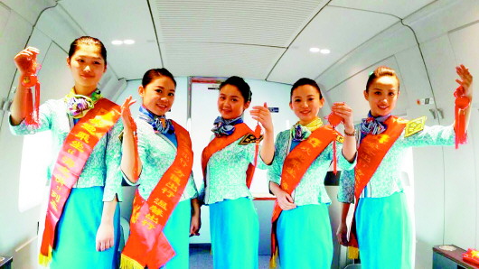 春节来临之际,济南铁路局青岛客运段的部分高铁列车长利用休息时间齐聚一堂,共同在高铁列车上向旅客们致以春节的诚挚问候。她们用自己最美丽的笑容和真诚的祝福,为全国各地的旅客提供最真诚最优质的服务。