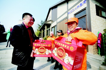 14日,李沧区的2600余名环卫工每人收到了一盒由青岛天路公司送来的大馒头。据悉,春节期间,这些工人们将留守岛城,像往常一样辛苦工作。青岛天路公司总经理、市人大代表朱继强说,希望大家减少燃放烟花爆竹,为环境、为环卫工减负。