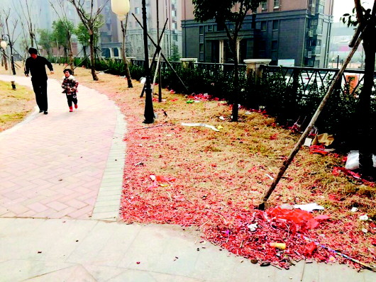 集中燃放点成摆设 小区内遍地鞭炮皮