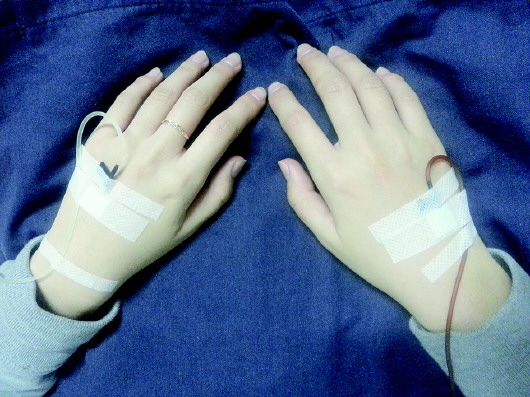 ◥2014年2月3日,孕84天。全天候无缝隙妊娠剧吐愈演愈烈,当天更是吐出胆汁和鲜血,体重比孕前减少十斤。