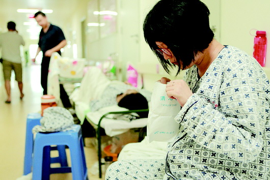 2014年8月5日,孕267天入院待产,仍然孕吐不止。