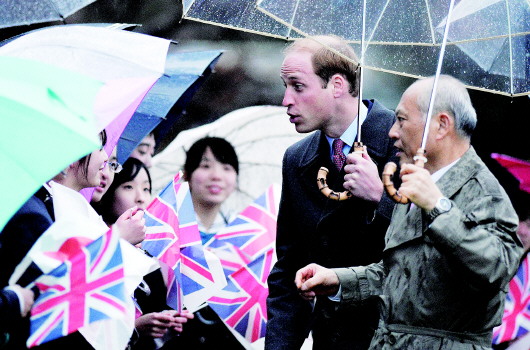此次威廉王子的到访,在日本掀起了不小的“王子旋风”。25日,为了一睹大不列颠王室的风采,不少日本民众冒雨手举日英两国国旗,在威廉王子途经的地点等候,富有修养的威廉王子不时停下来,与仰慕他的日本女粉丝握手。