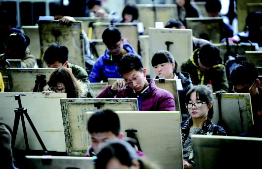 2014年通过美术考试考入黑龙江大学的孔芳说,班里参加艺考的不少,但最后能够考上的却不算多。“很多同学最后都选择了离家近的专科学校。”