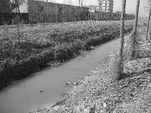 济南瀚洋公司北侧的废水沟。 本报见习记者 王建伟 摄