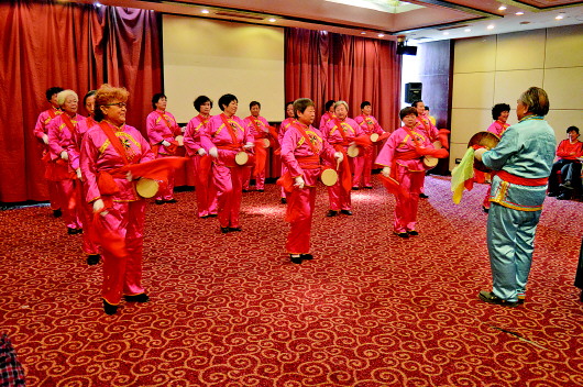 元宵节临近,济南市市中区大观园街道办的居民正在排练灯会节目。 本报见习记者 于悦 摄
