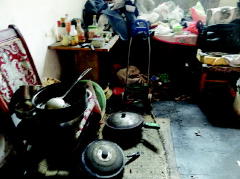 记者在二楼的其他几个房间内看到,几乎在每个房间都堆积着大量的泡沫板、木板等易燃品,屋里还有烧到一半的蜡烛,地上还有不少烟头。就在失火房间的西侧,里面还摆放着一张简易床铺,明显有住人的痕迹,所幸没有被殃及。
