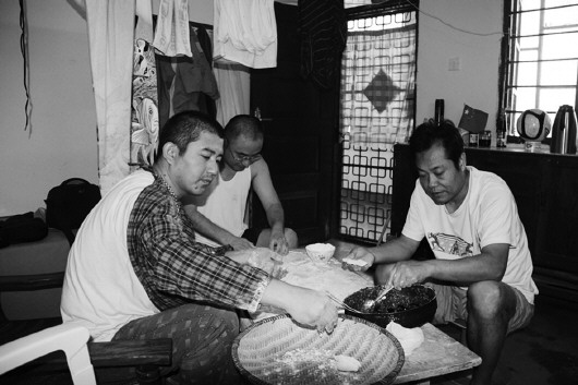 腊月二十九开始,队员们剁了饺子馅,烹炸过年最常吃的食品。大年三十贴完对联,朱建波就张罗队员们包饺子。队员洪星一开始擀的面皮儿不怎么圆,他们包的饺子也跟着变了形。包着饺子,每个队员开始回忆在家时年三十的晚上是如何过节的,“黄队长除夕夜包饺子最爱说他家丫头,说这么大的闺女了还包不好饺子,洪星家里哥哥嫂子多,一般他插不上手,不过喜欢坐在旁边聊天。”朱建波介绍着,而他自己算起来已经有八个年头没在家过年了,老家的过年饺子真成了遥远的回忆,“由于时差的原因,此时此刻我家里应该正在祭祖吧,妈妈一定不会忘记求祖先保佑我们平安顺利。”