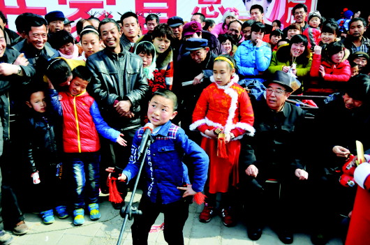 博兴店子镇的马瑞今年8岁,自幼爱好说书的他也亮起了嗓子。