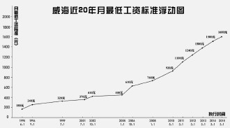 3月1日起,威海市统一执行全省最高标准,2014年执行的最低工资标准同时废止。