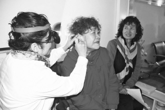 3月3日为“全国爱耳日”。2日,西门外、布谷夼、同德、塔中、南山、塔山社区举办了爱耳日专场健康讲座,医护人员为居民现场进行免费的听力测试。