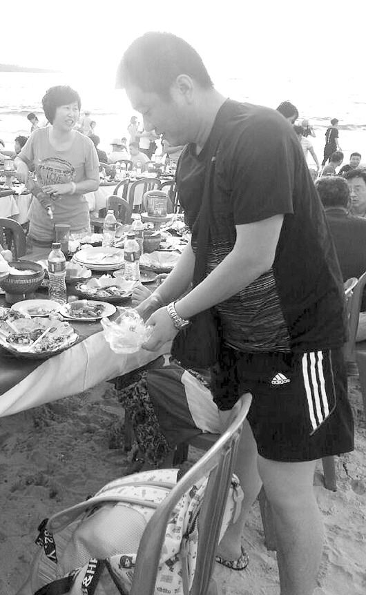 春节期间,参与此次出境游“文明使者”评选活动的游客在巴厘岛沙滩上自觉清理垃圾。受访者供图