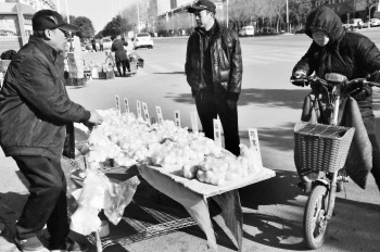 3月3日,振兴路上,有商家在路边上现场制作元宵,吸引不少市民驻足。元宵节将至,元宵热卖。 本报记者 邹俊美 摄