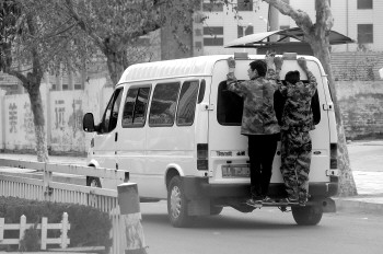 2日下午,人民路上,一辆小客车在非机动车道上自北向南行驶,令人意想不到的是车后面竟然还站着两名男子。只见两男子双脚踩在车后的踏板上,双手紧抓车顶,让人看了着实捏把汗。 本报记者 邓兴宇 摄影报道