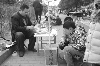 记者看到,在张峰手工艺制作的小摊上,不仅有充满年味的灯笼,还有一些用丝带编织的“凤凰”、用易拉罐制作的座椅以及用铁丝制作的益智玩具等。在制作的同时张峰还不时用口技学着动物声音,见到有小孩观赏还会主动送出一两个。“现在许多年轻人都不了解勤俭节约精神,这些东西不是为了挣钱,现在既能宣传勤俭节约精神又宣传了环保理念,何乐而不为呢?”张峰说。
